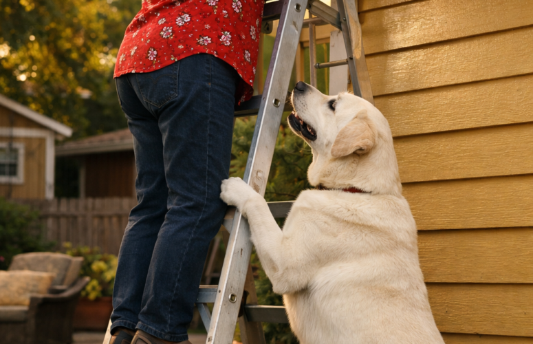 Я поднималась по лестнице, чтобы срезать сухие ветки дерева, но мой пёс вдруг начал настойчиво лаять и тянуть меня вниз за штанину: сначала мне показалось, что он просто сошёл с ума или играет и может случайно столкнуть меня с лестницы