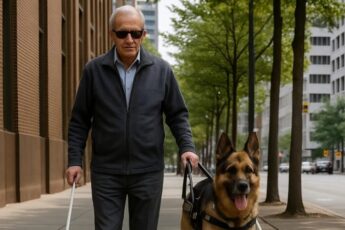 Слепой мужчина не заметил огромную яму посреди тротуара и подскользнулся внутрь: но именно в этот момент