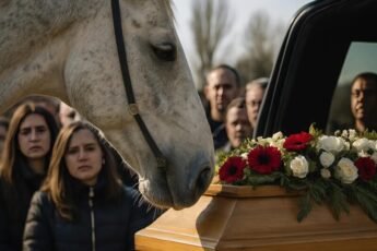 Во время похорон, когда гроб погрузили в машину, неожиданно появилась лошадь: лошадь медленно подошла