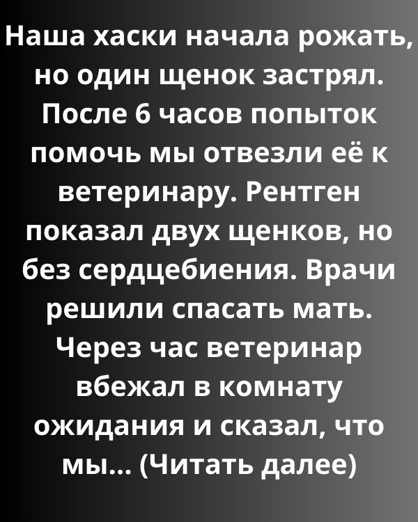 Наша хаски начала рожать, но один щенок застрял. После шести изматывающих часов попыток помочь мы поняли, что больше не справляемся.