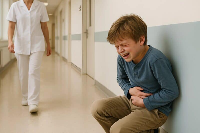 Поздним вечером двери приёмного отделения распахнулись, и внутрь вошёл худенький мальчик лет девяти. Он был один, в старой одежде, слишком большой для его маленького тела. Лицо было бледным, губы дрожали, а руки судорожно прижимали живот.