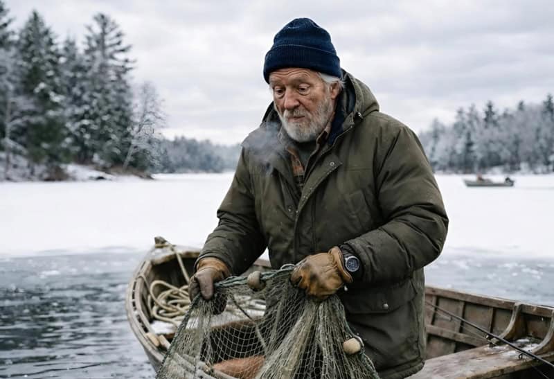 Одним морозным январским утром температура опустилась почти до минус тридцати градусов. Лед на озере тихо трещал, когда Том начал медленно вытягивать свою сеть из воды.