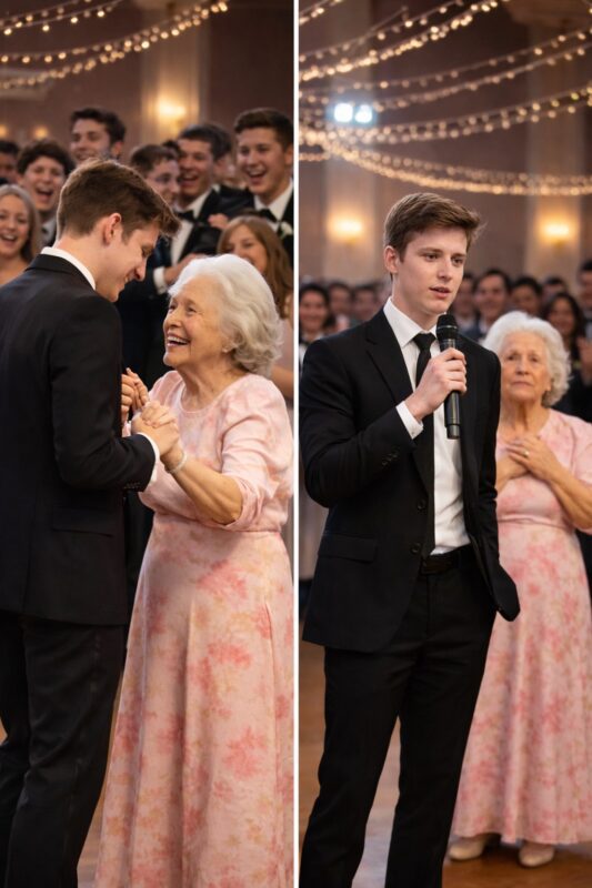 Мои одноклассники смеялись надо мной, когда я пришёл на выпускной вместе с бабушкой и пригласил её на первый танец… Но всё изменилось, когда я взял микрофон и заставил весь зал замолчать