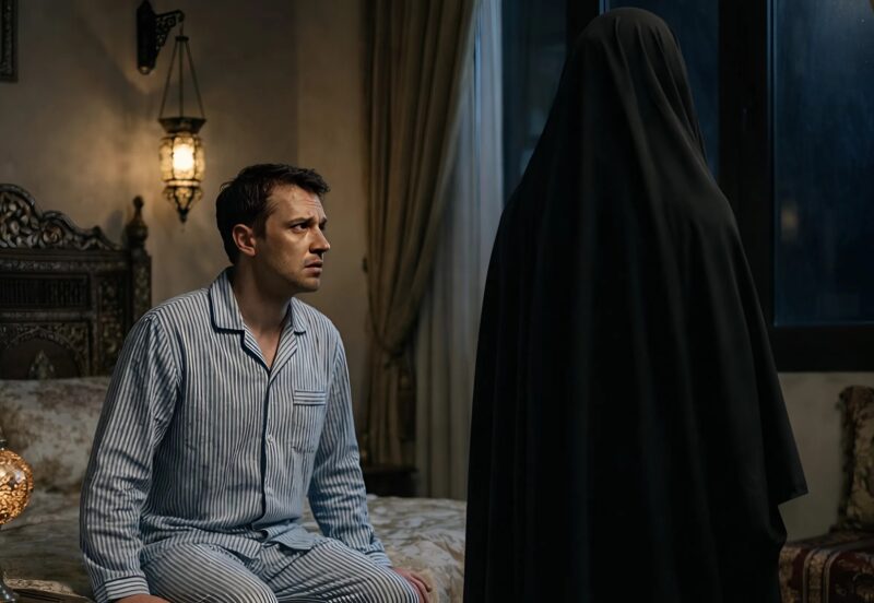Женщина подошла к зеркалу и начала снимать хиджаб, уверенная, что муж спит.