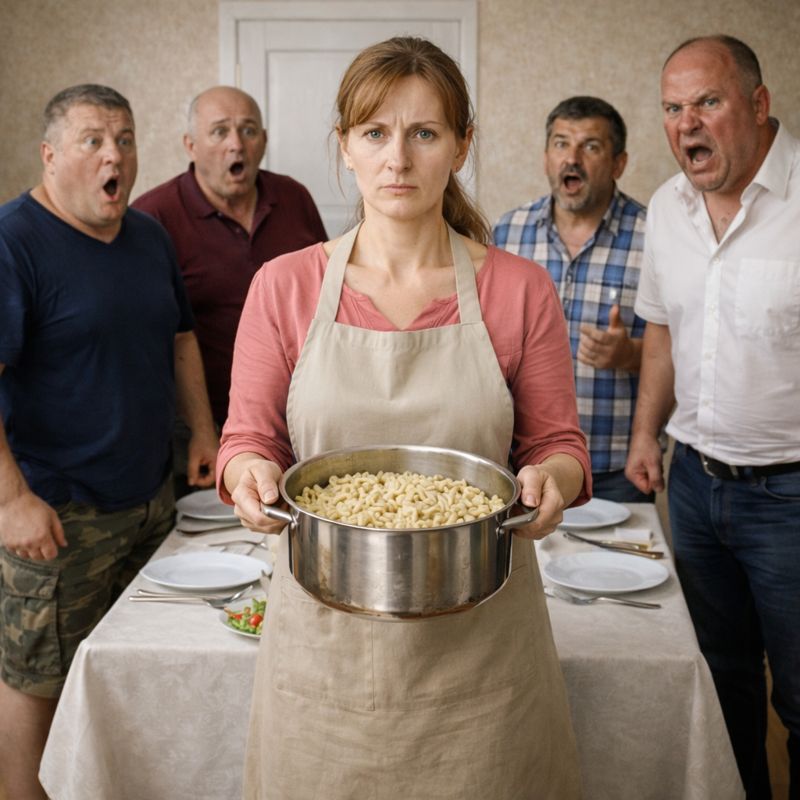 Гости замолчали. Николай посмотрел на кастрюлю, потом на меня. Внутри лежали разваренные макароны, самые дешевые, слипшиеся, серые.