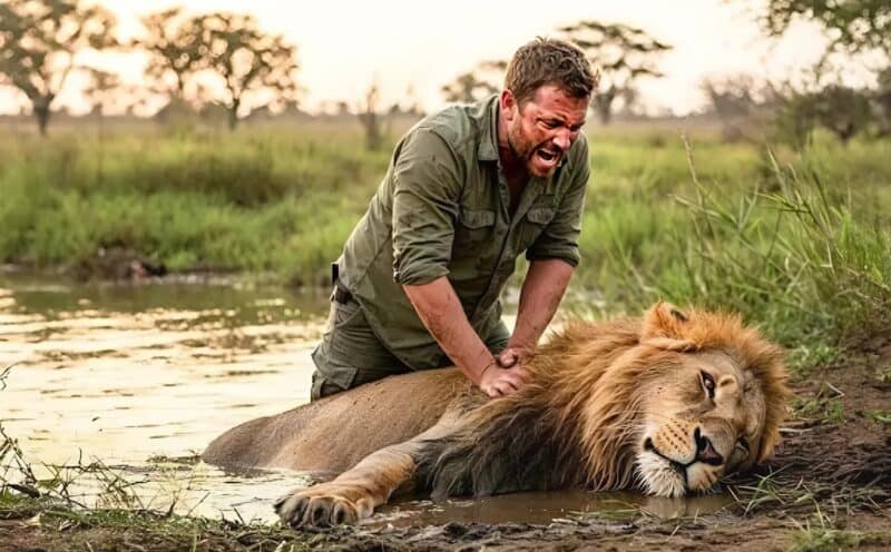 Мужчина долго стоял неподвижно, чувствуя, как колотится сердце. Он понял: в этот день он не просто спас льва. Он пережил встречу, которая изменит его навсегда.