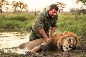 Мужчина спас из реки льва, который чуть не утонул, но когда они оказались на суще, лев сделал кое-что неожиданное