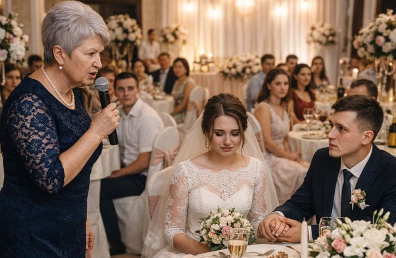 Невеста осторожно протянула руку. Но вместо того чтобы просто надеть кольцо, свекровь взяла микрофон.