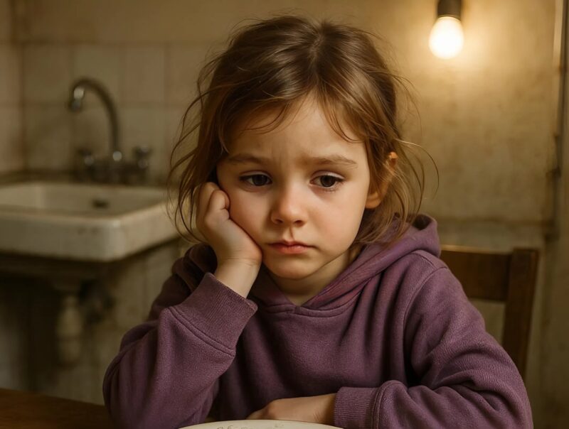 Первые часы Лиза ждала. Она считала минуты, шептала своим куклам, что мама вот-вот придёт. Потом дни начали сливаться в одно сплошное серое ожидание. Она заворачивалась в тонкое одеяло, сидела под столом, прячась от тьмы. Когда хлеб закончился, она скребла миску ложкой, надеясь найти хоть крошку.