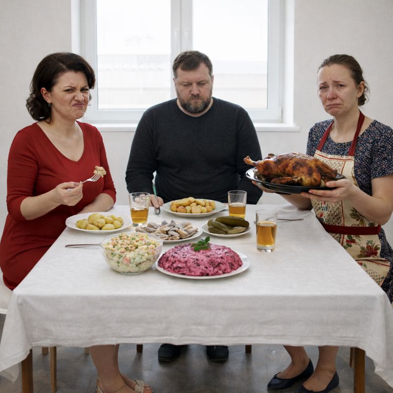 Лариса брезгливо подцепила вилкой край нарядной «Селедки под шубой», словно надеялась найти там не вареную свеклу, а как минимум часовую бомбу. Она сидела во главе стола, по правую руку от именинника, и своим видом напоминала ресторанного критика, который случайно забрел в привокзальную столовую и теперь вынужден терпеть гастрономическое унижение.
