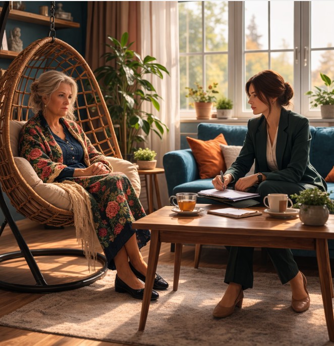 Свекровь, Антонина Петровна, даже не дрогнула. Она сидела в моем кресле-коконе, вальяжно раскачиваясь и поправляя новую шаль.