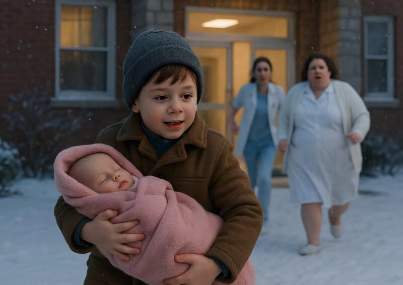 Но малыш даже не обернулся. Он побежал по коридору, крепко прижимая сестру к груди. Медсестра рванула вслед, позвала охранника, отец бросился за ними. В коридоре поднялась настоящая тревога.