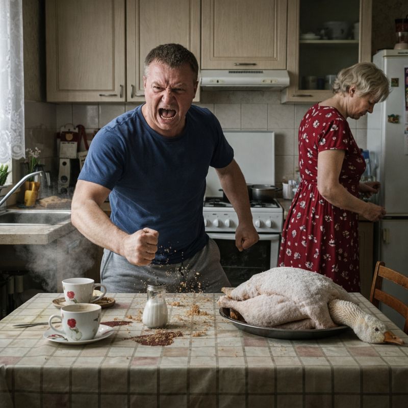— Жри сама! — заорал он и с размаху швырнул гуся в мусорное ведро.