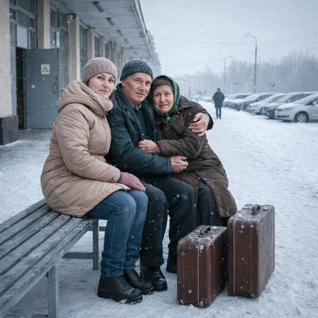 На обледенелой железной скамье сидели двое. Старик в курточке, насквозь пропитанной инеем, и маленькая женщина, закутанная в поношенное пальто. Мужчина обнимал её так крепко, будто пытался врасти в её тело, передать последнее тепло. У женщины на щеках застыли настоящие ледяные дорожки — слезы замерзли прямо на лету.